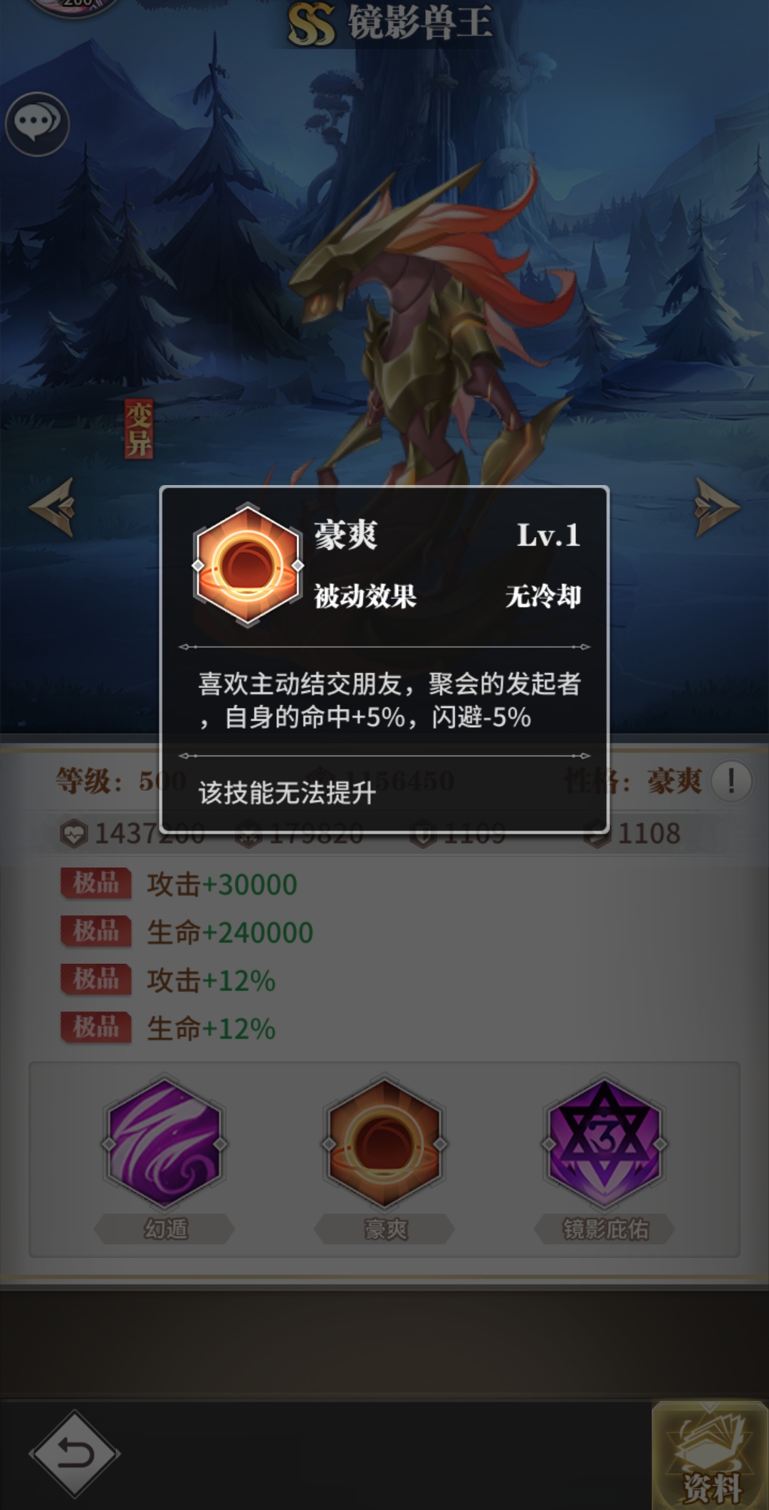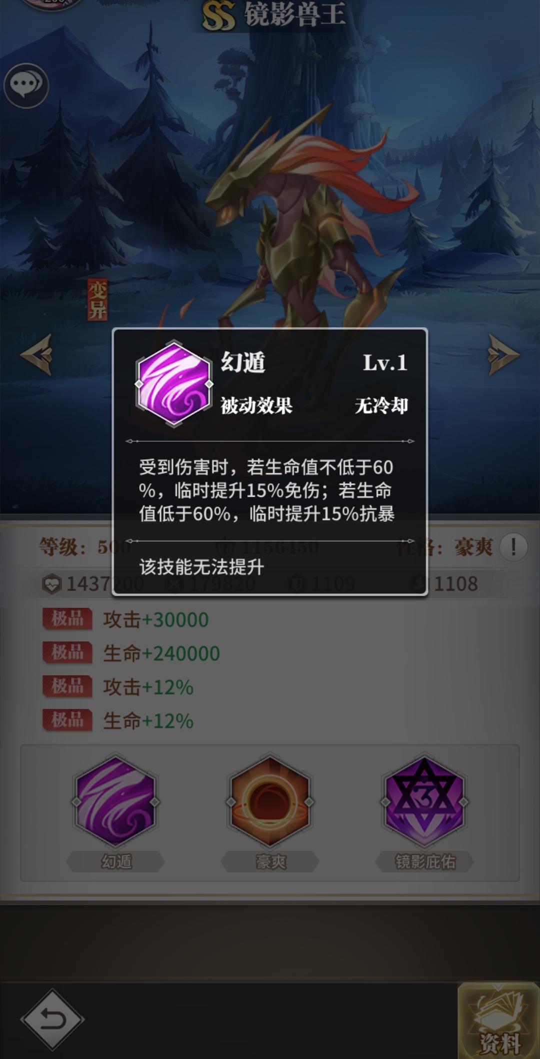 所以个人感觉一个队伍一个变异大地之王,一个变异鬼虎必备,其余按照配置来,镜像兽保命非常好用,可带多个