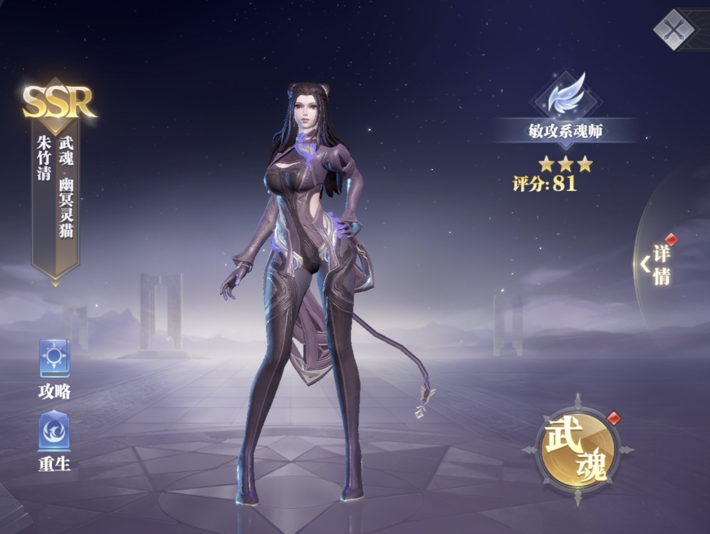 魂师定位朱竹清,敏攻系魂师,较为全能,但是非常吃阵容的一张卡。自身技能主要是攻击类,暴击、暴伤、增伤、群攻、单攻能力都很不错的,练度低想带动比较难,高配玩的舒服。