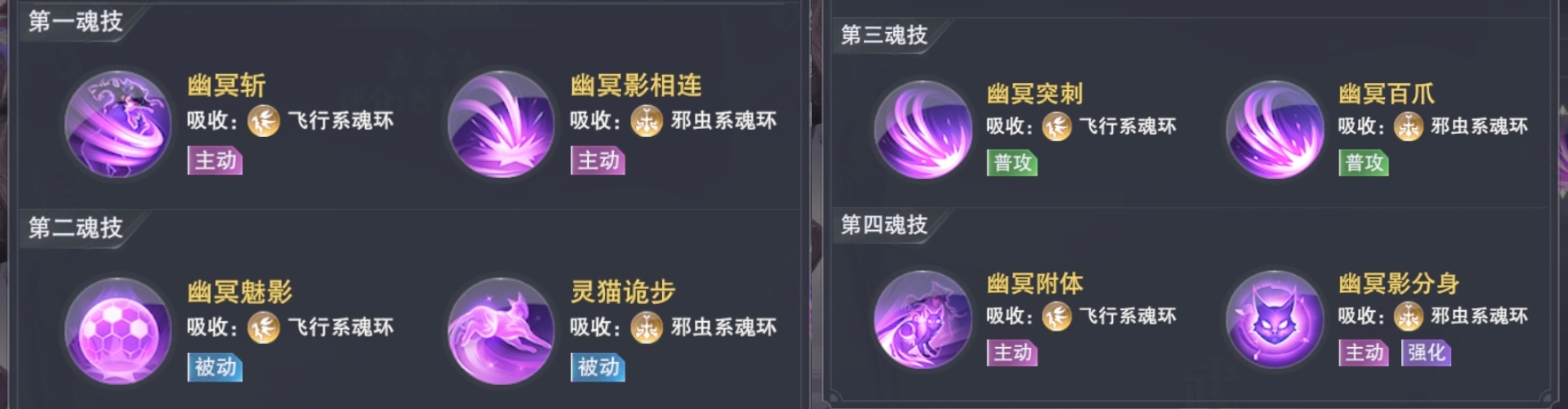 魂环配置推荐幽冥斩+幽冥魅影+幽冥突刺+幽冥影分身