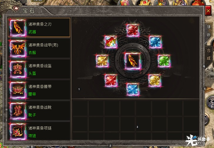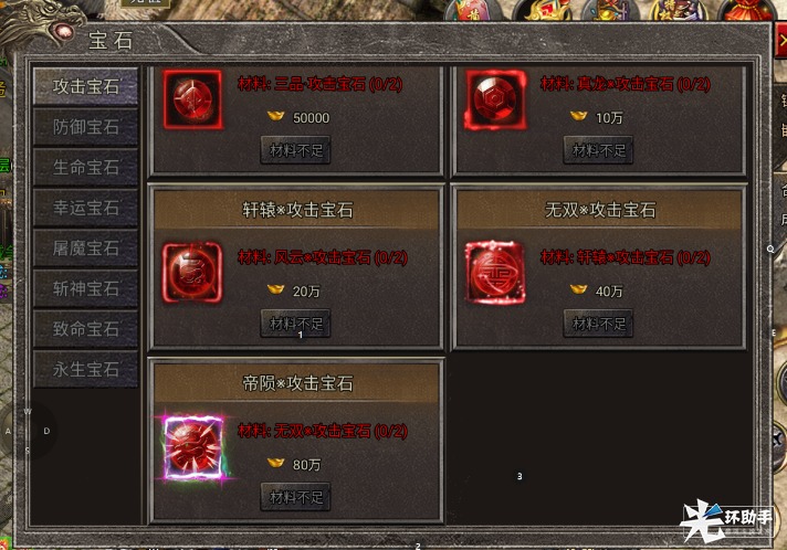 1. 装备部位宝石分为五大种类分别为:攻击、防御、生命、幸运、屠魔、斩神、致命、永生。