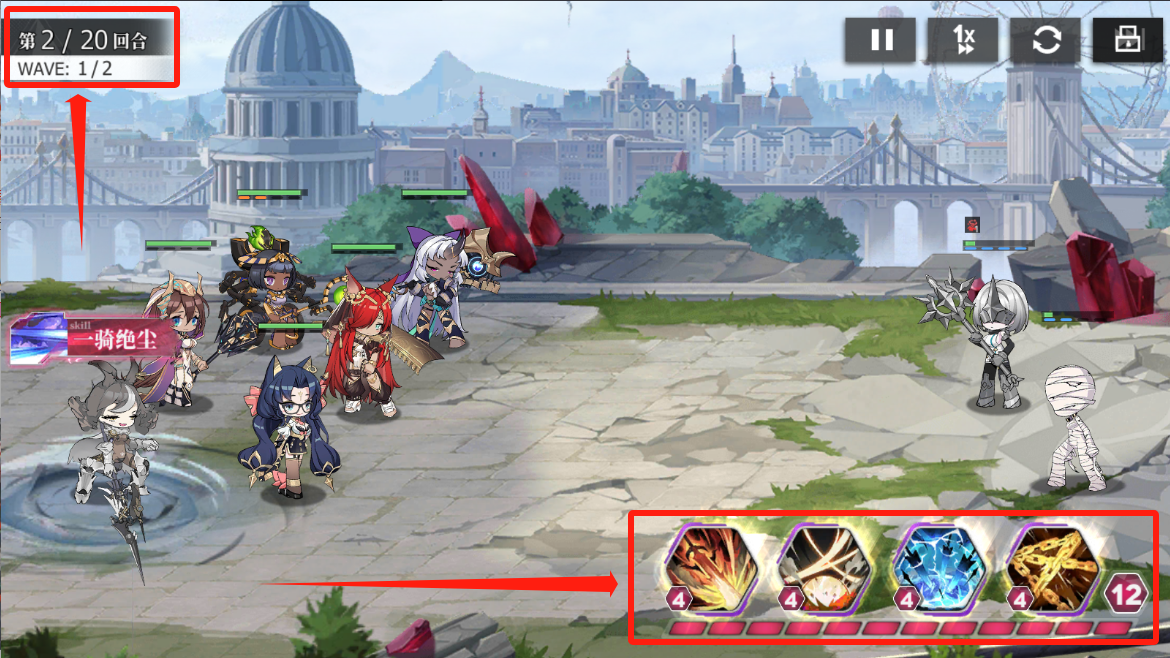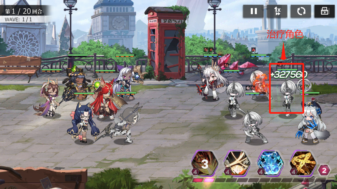角色每行动1次都会积累1聚能点,最多可以积累到12。因此,当聚能点积累到10,且场上还有4个以上的敌人时,就应该使用古物。但是,如果场上有4个以上的剩余生命值低于20%的敌人,就不要使用古物,而是保存聚能点。