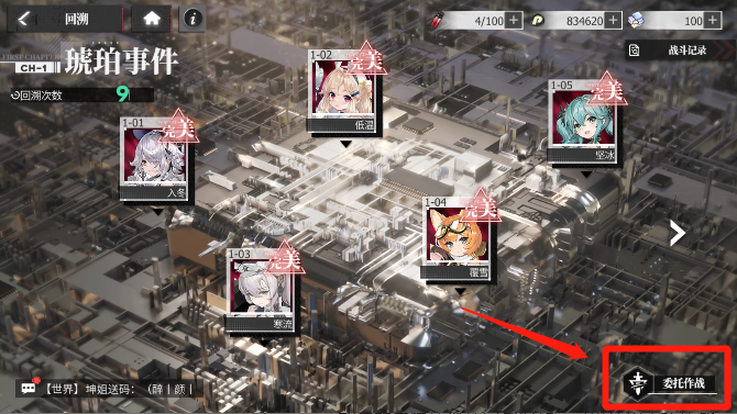 如果想快速挑战已经完成的回溯关卡,可以“委托作战”