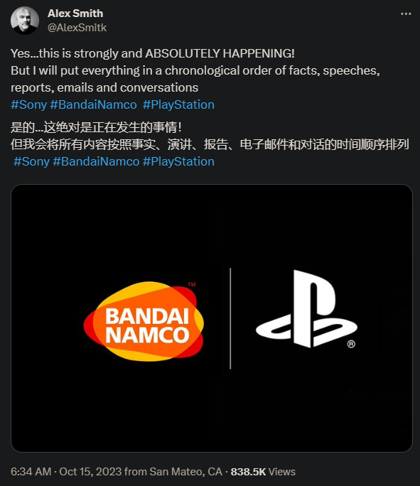 ( IT 之家 )10 月 16 日消息,索尼 SIE 旗下第一方游戏工作室 Bend Studios 的前开发者 AlexSmitk,昨日在 X 平台上发布爆料,声称索尼计划收购万代南梦宫,以应对微软收购动视暴雪。