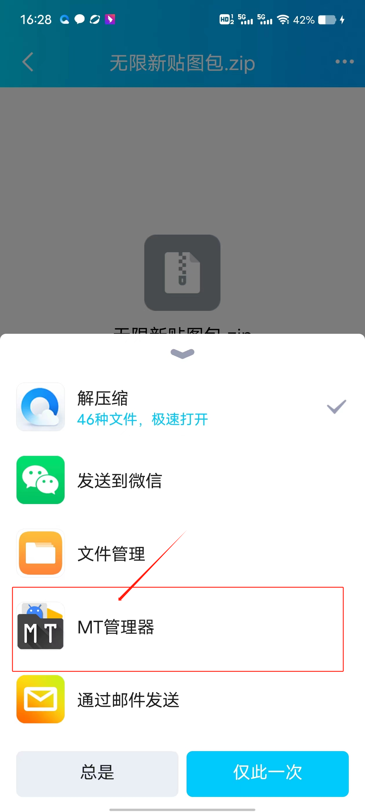 2、下载无限融合贴图包,点击解压,解压完成后,打开方式选择MT管理器。