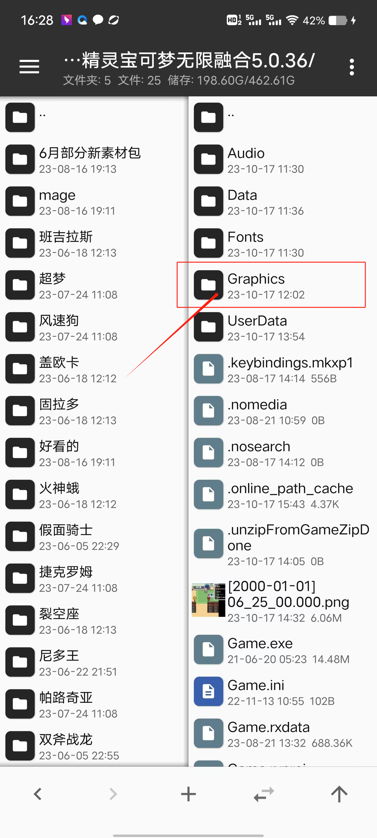 4、选择无限融合游戏原包后,点击进入【Graphics】文件夹。