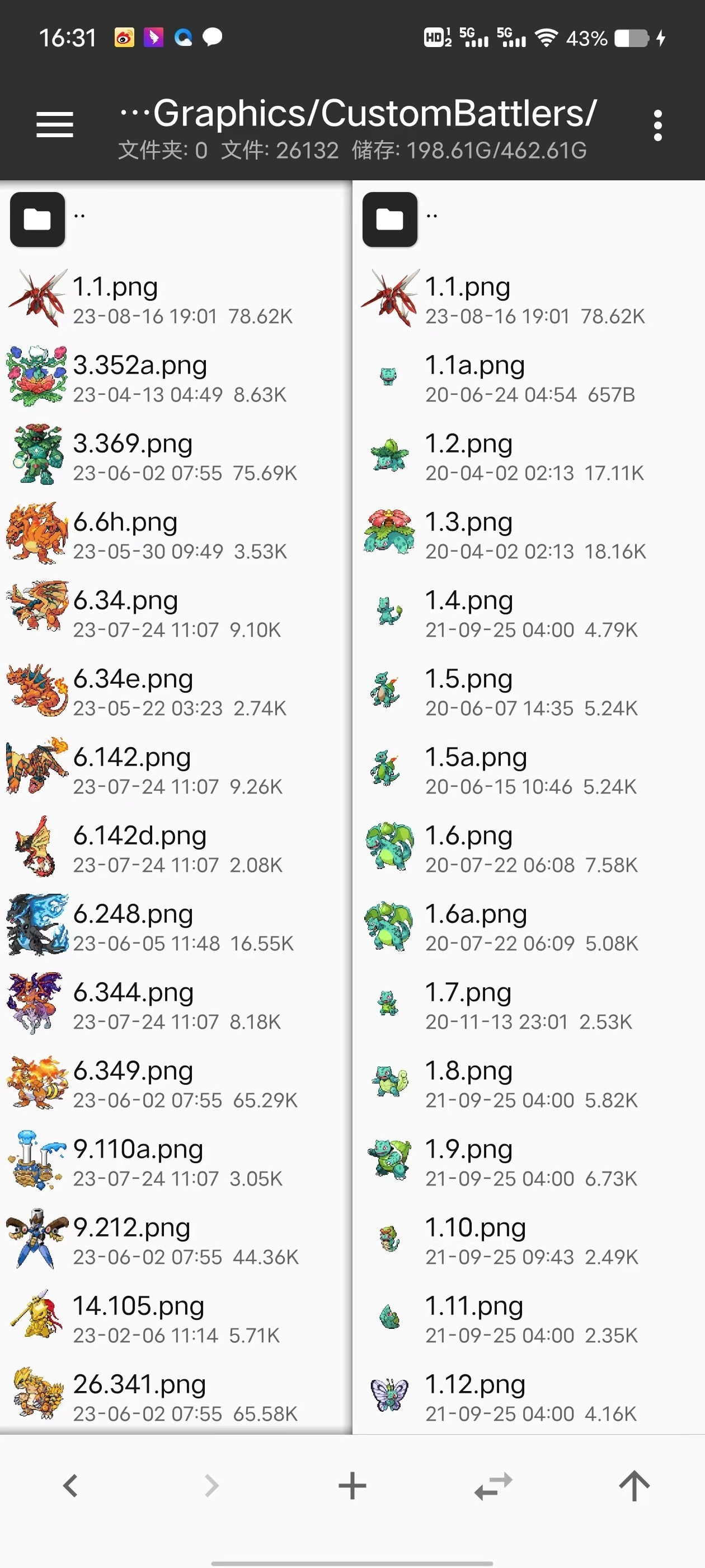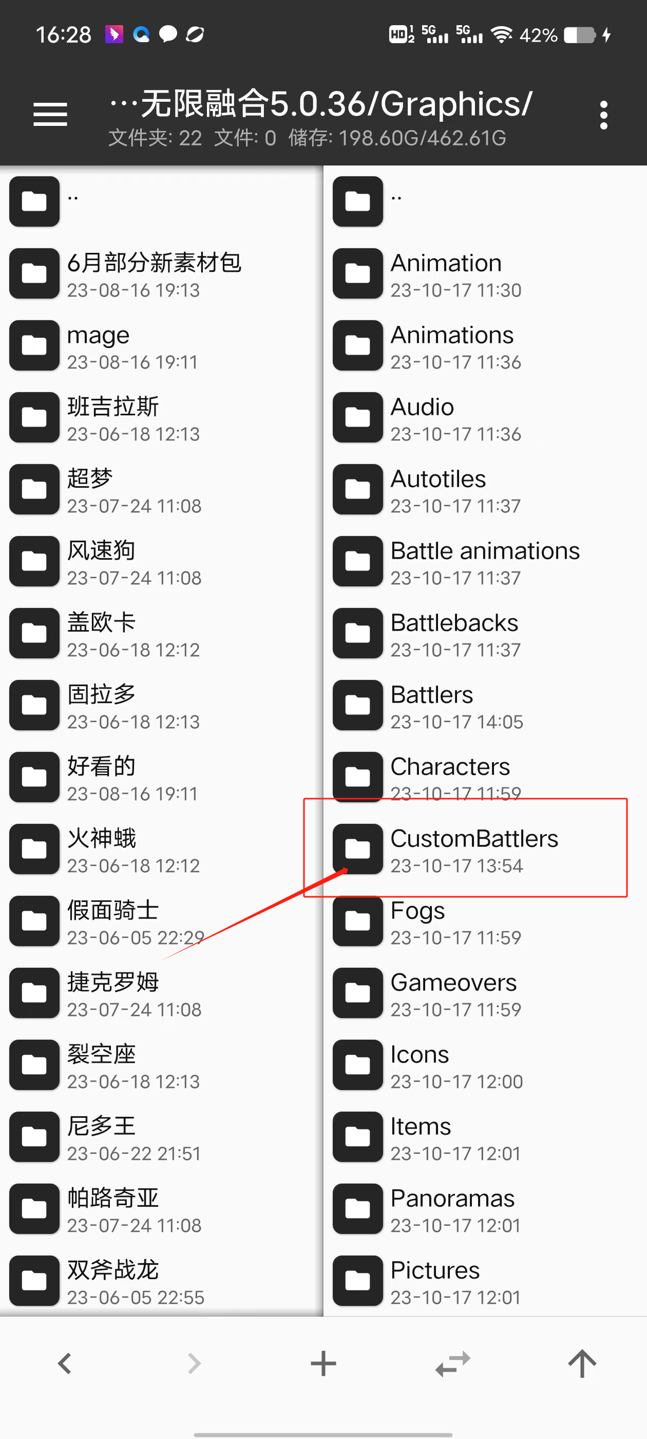 5、在【Graphics】文件夹中,再选择【CustomBattlers】文件夹,我们就可以看到无限融合游戏本体的原贴图了。