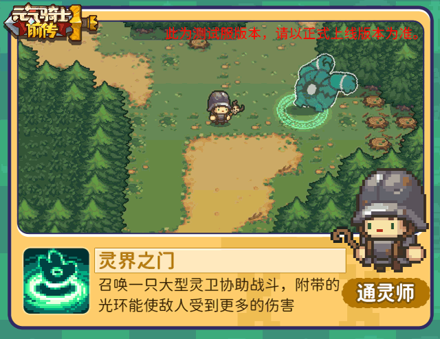 【灵界之门】:通灵师召唤一只大型灵卫协助战斗,它体型硕大,粗壮的双臂让人害怕。大型灵卫攻击方式多样:双臂猛砸地面造成冲击波,原地旋转双臂弹开敌人,抱住身体向前快速翻滚,还能通过灵界之门直接传送到敌人脚下,出其不意发起攻击。