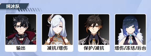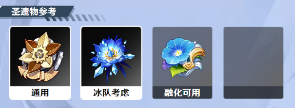 「冰套四件套」:在冰队中,有元素共鸣提供的暴击率,加上该套装四件套暴击率,也能够保证35%的暴击率提升,该套装二件套的加成范围则比逐影猎人更广一些,在暴击率溢出的冰队可以优先考虑;