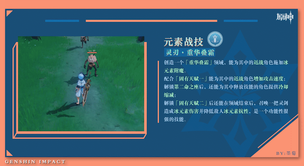 战技强化普攻的状态下,普通攻击命中敌人时会降低自身生命值,而「固有天赋一」的强化重击命中敌人时会恢复自身生命值,普重连携保证了稳定的生命浮动,以便于触发一些高加成武器以及圣遗物。