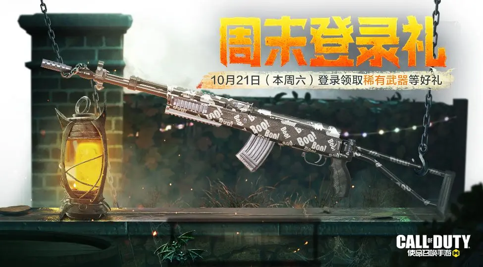 10月18日,周末登录礼惊喜上线,战士们仅需登录游戏,就能获得稀有级武器:SKS-Boo许动和黑暗召唤宝箱!