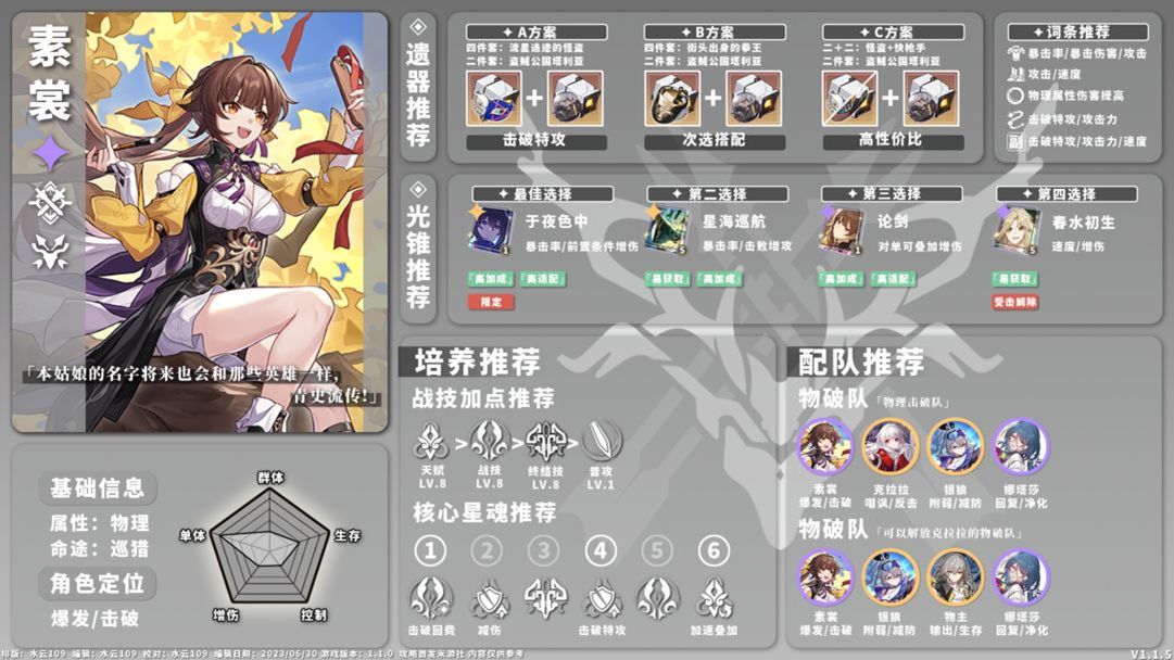 4星角色「素裳(巡猎•物理)」物理击破队的核心角色,需要物理弱点的平民战神