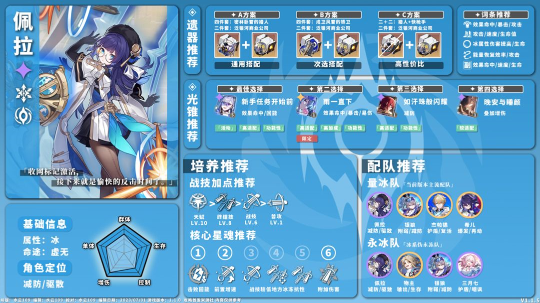 4星角色「佩拉(虚无•冰)」能打输出的辅助,拥有高额的群体减防和当前版本独一无二驱散敌方状态的机制