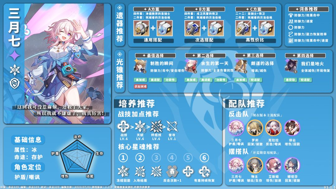 4星角色「三月七(存护•冰)」高额单体盾,嘲讽机制个别场景高光
