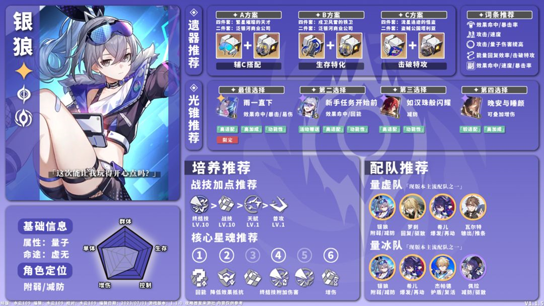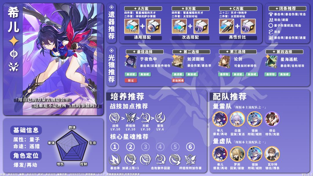 现版本量子辅C,弱点附加的机制使其成为了纯色队的核心角色,高额减防使其拥有了不