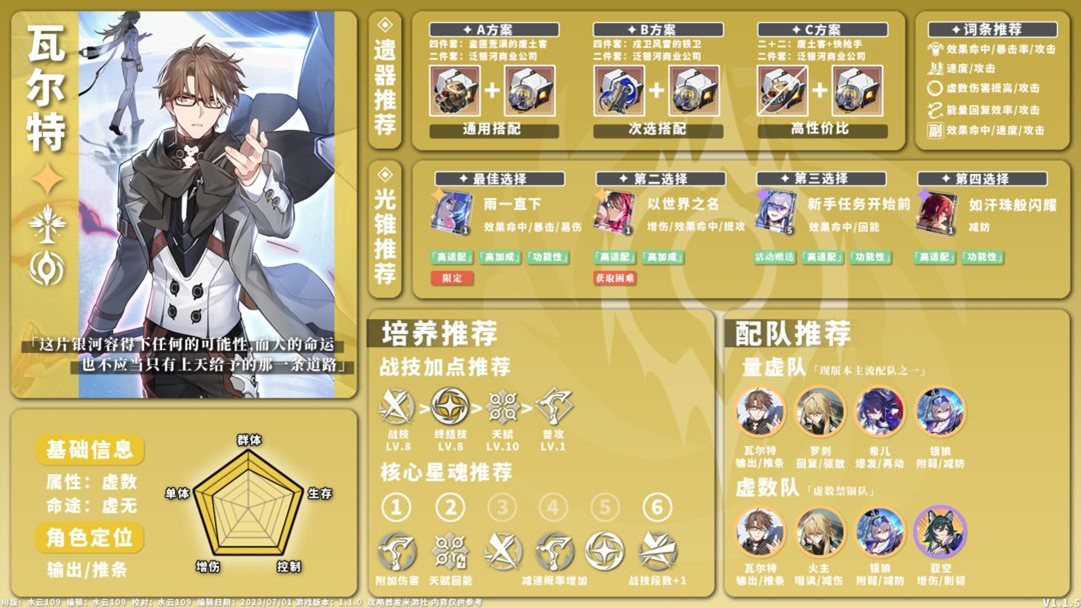 5星角色「瓦尔特(虚无•虚数)」现版本虚数辅C,拥有独一无二的推条机制