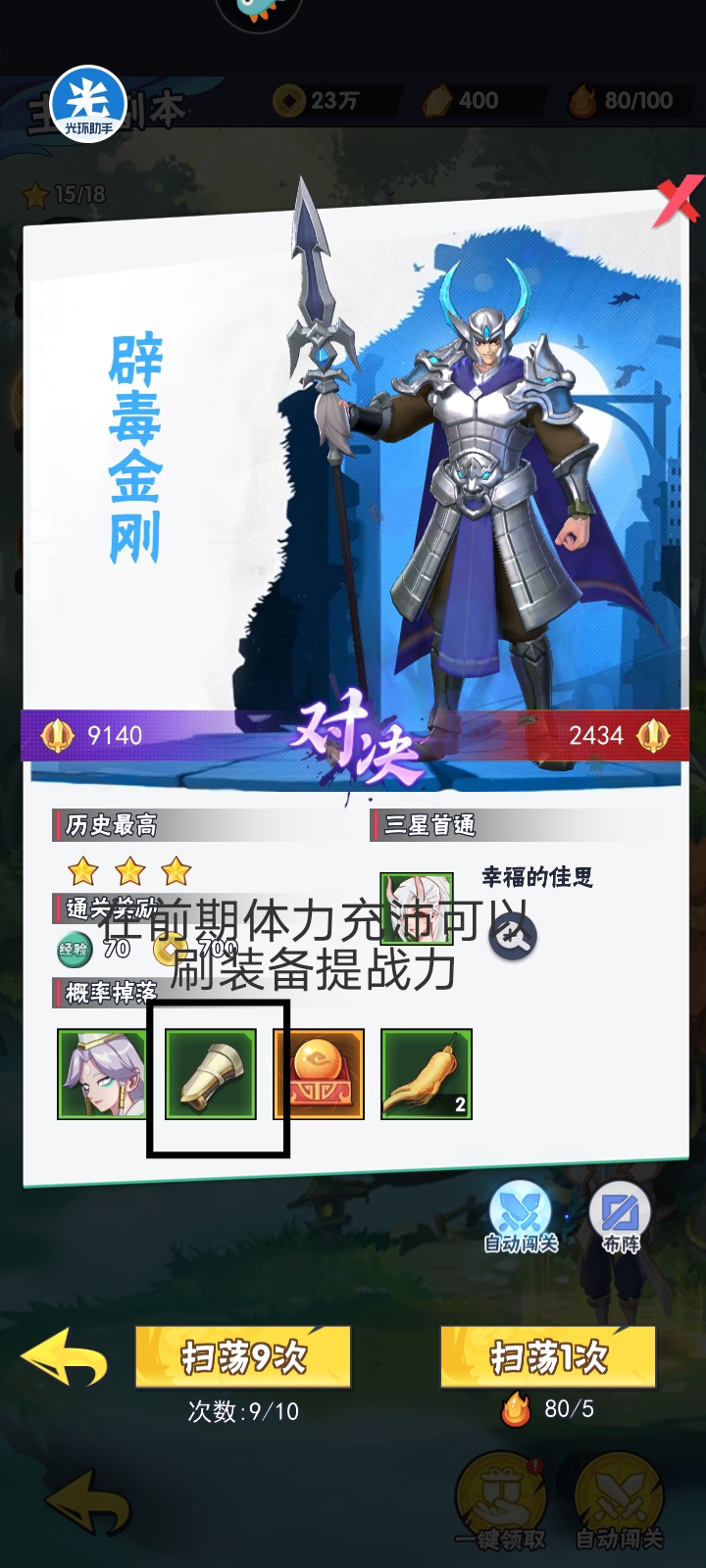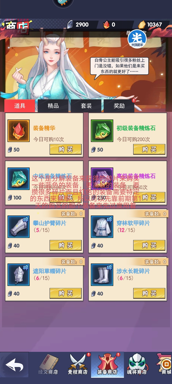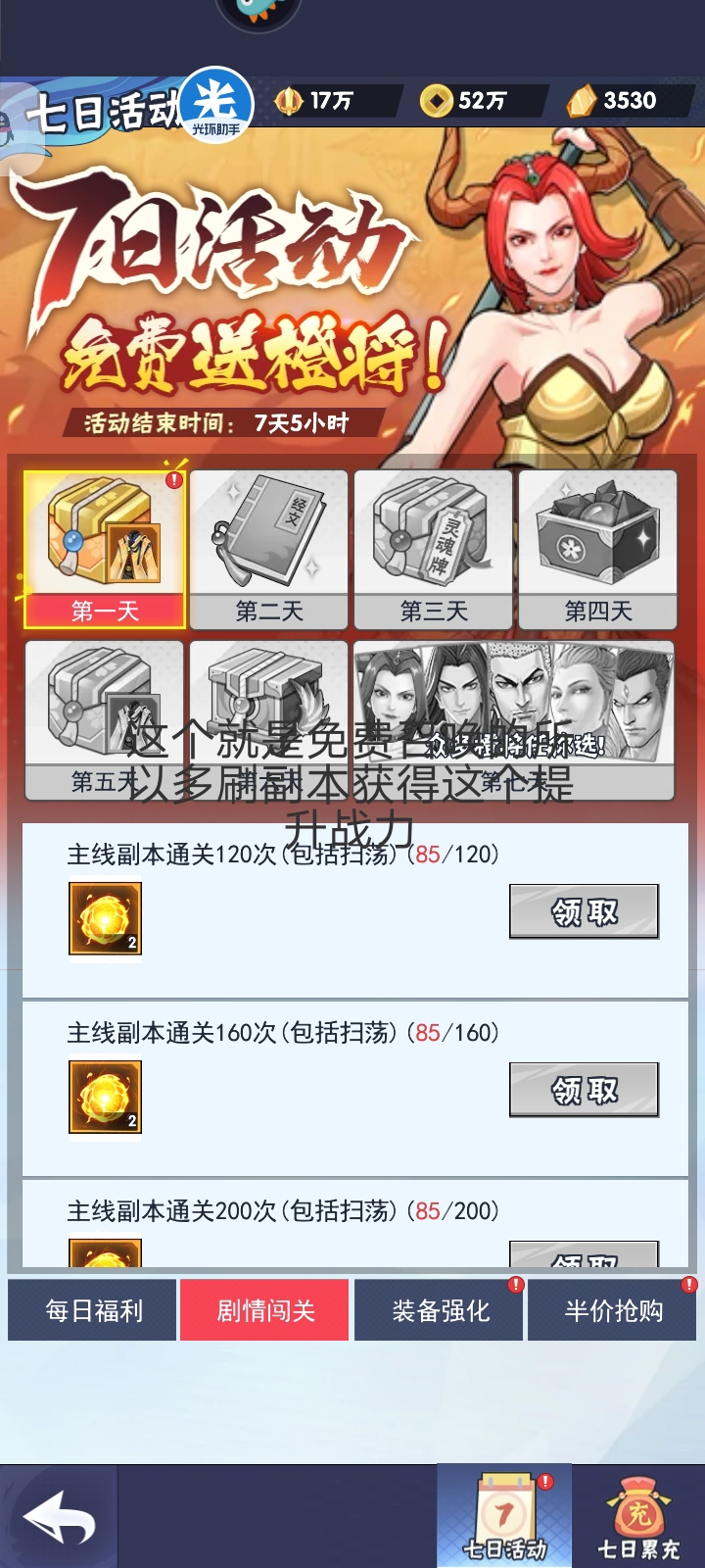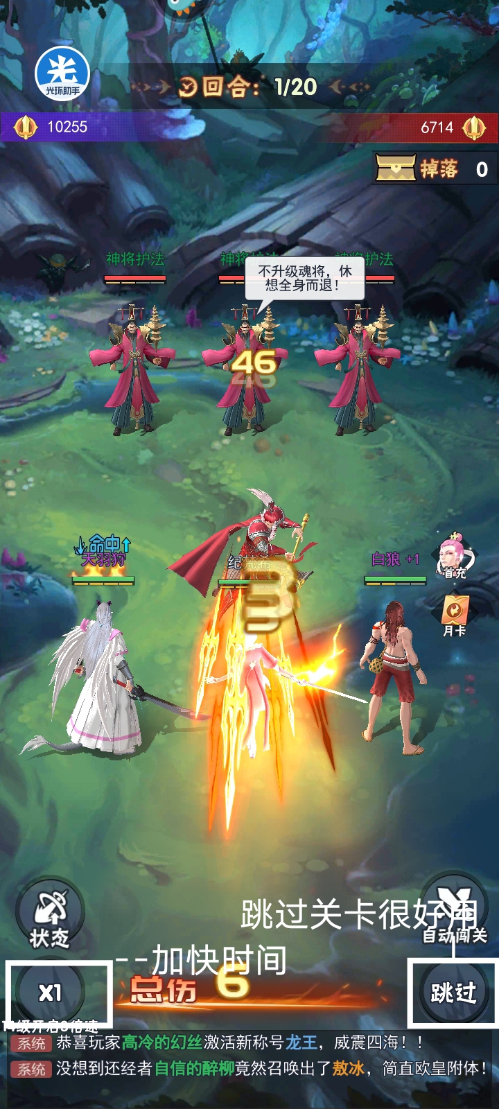 龙神万相:神战(新手攻略〈1〉)OL白山茶发布于 2023-10-18关注开局选择角色一共有两个一个是近战 另一个是远程这个就看个人意愿想选哪个(注意这个选择的角色是不可以换其他角色的所以要斟酌) 开局新手引导可以获得紫色角色是可以用来过度的到20多级的时候火种多了就可以转推金色角色 副本可以扫荡获取装备更好的打副本 可以加速和跳过比较人性化 通关会给装备和进阶角色还有升级的物品 副本推的多了可以免费获取角色如图所示 这个也就是相当于是本命来提高角色的生命攻击有必要凑的提高主力角色的实力 本命加成也是很高的金色角色比普通的高红色也一样 这些是我抽的运气不是很好 旅团是要进的可以获取重要的资源来提高战力 这个就是第一天可以获取比较多火种的地方主要还是推本以及扫荡 三种召唤简介如图 我召唤出来的角色 兑换角色的商店 钻石兑换 竞拍也是靠钻石 装备商店比较坑的就是蓝色装备要碎片合成 旅团介绍