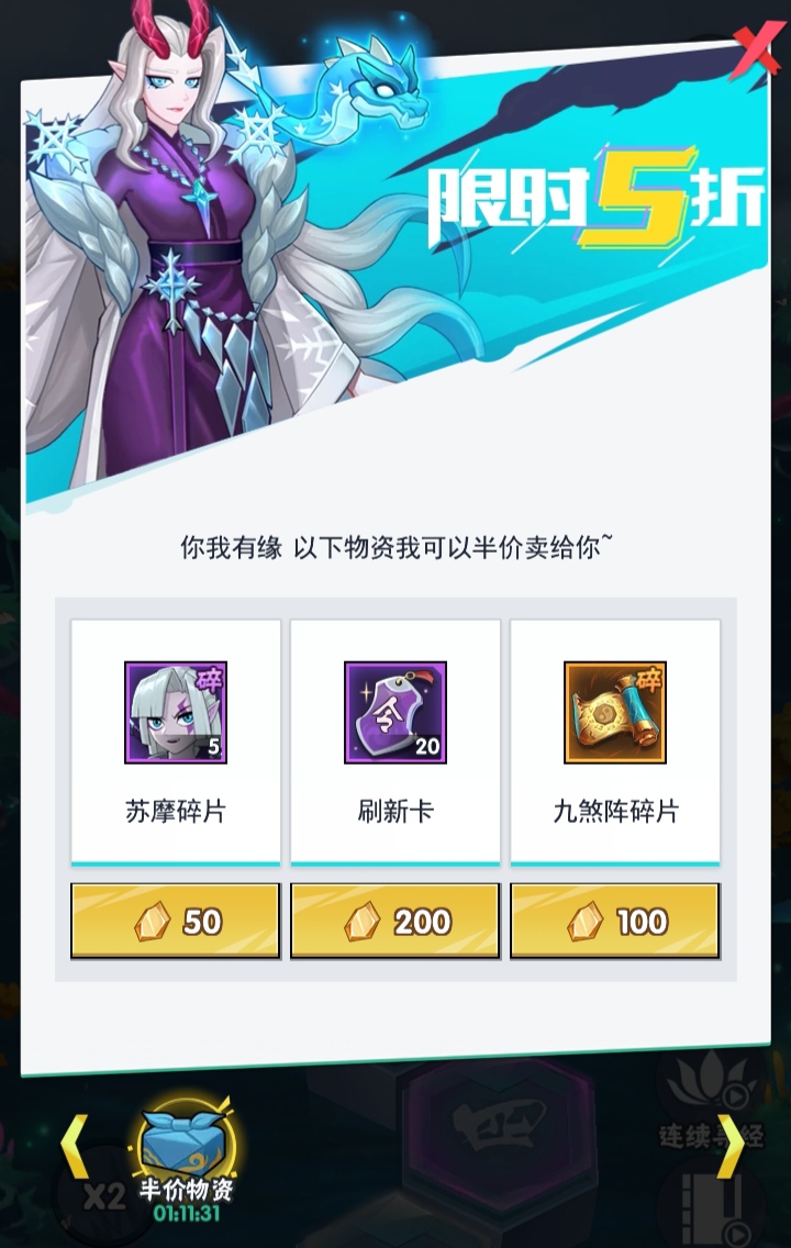 半价物资几率出现主要就是一些物品和角色碎片会半价这个可以买如果有半价红色角色购买是值得