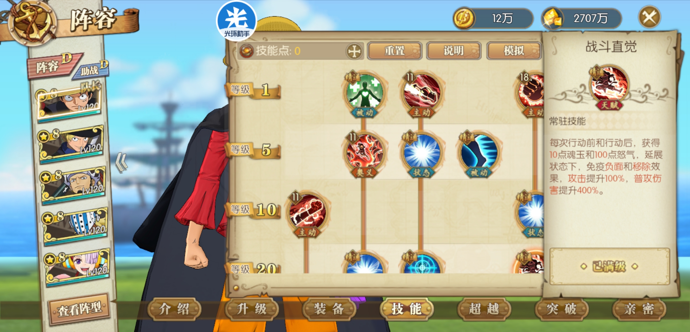 路飞打pve,大家就带三个单体技能和群体奥义就好,路飞一直叠加伤害,在配合基拉打悬赏等,伤害是非常高的。