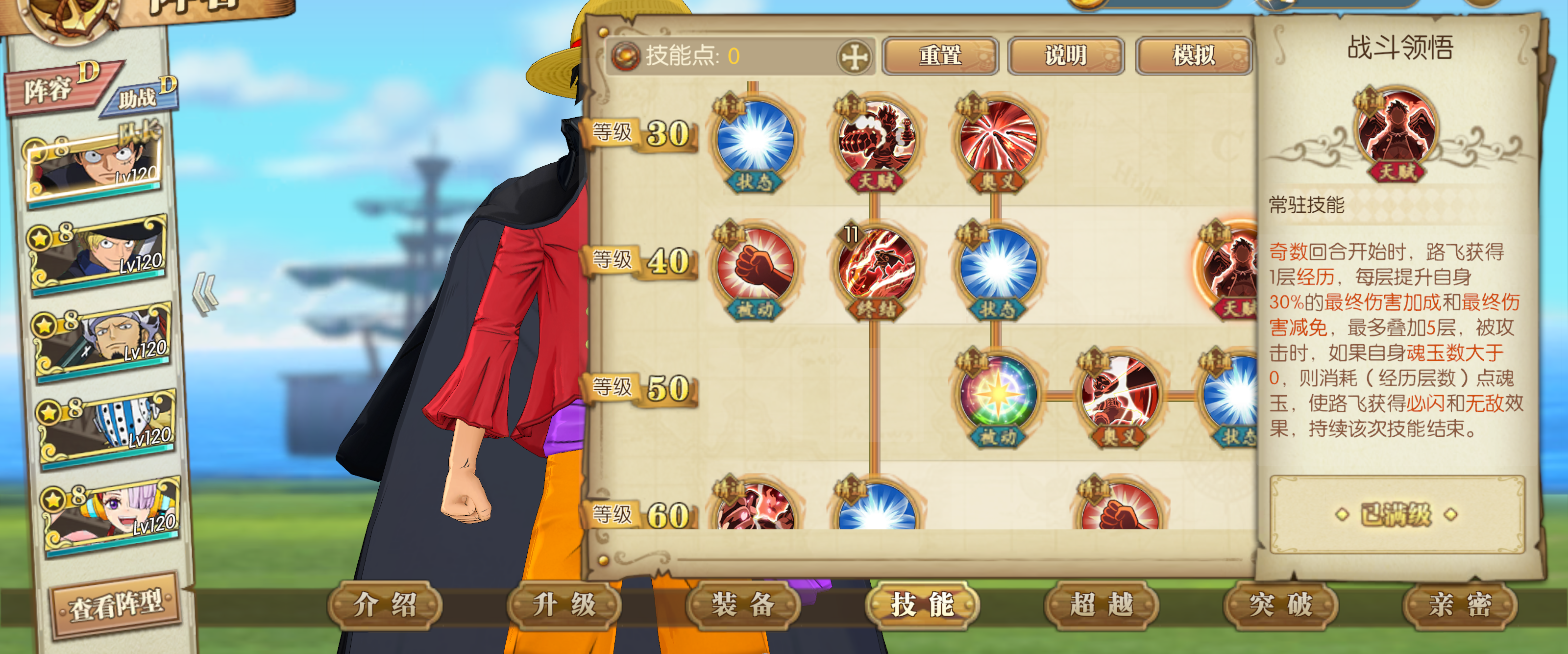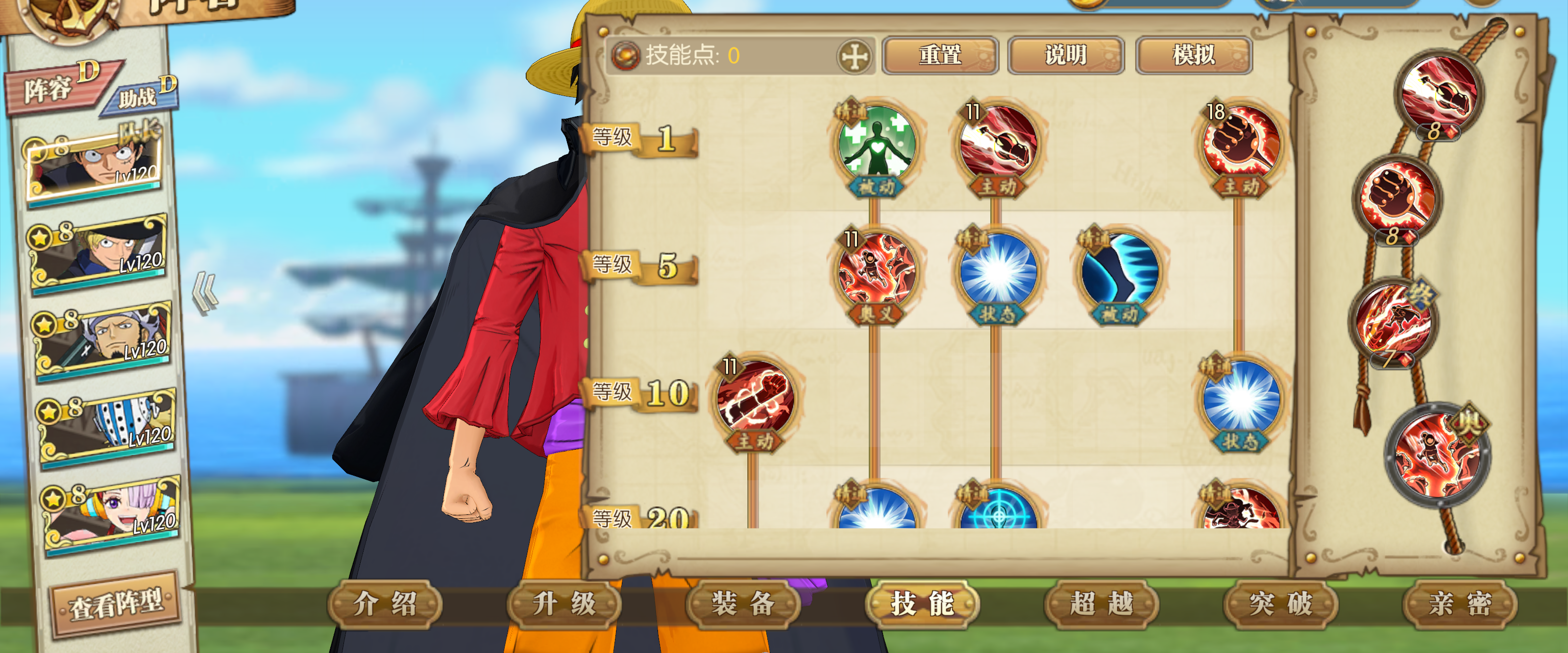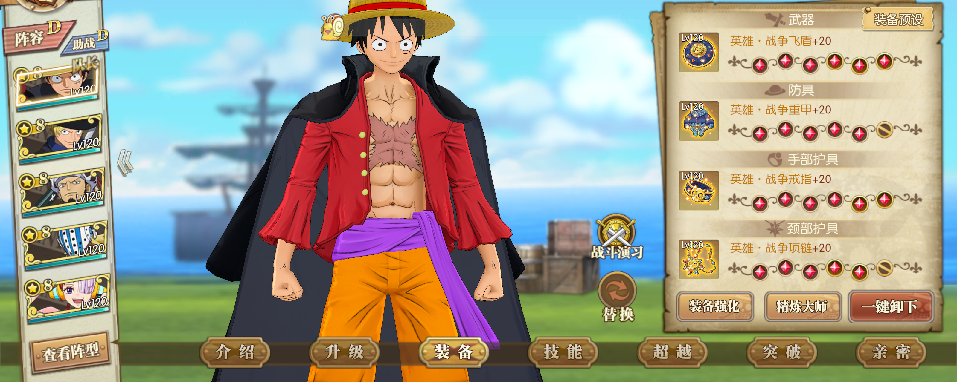 路飞打pvp的话,就像上面那样带技能就行了,对面要是有萨博,那第一回合直接放单体奥义,先手把敌方萨博带走会比较好
