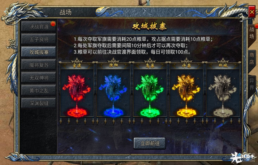2、粮草可以前往决战官渡界面免费领取,每日可领取100点