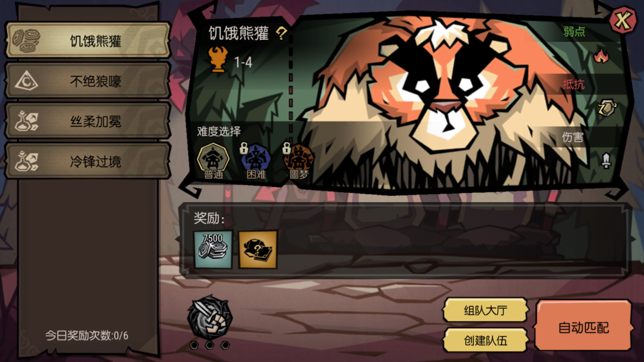 每个副本模式分为【普通】,【困难】,【噩梦】,不同难度的副本对应不同等级的奖励。第一次进入副本的冒险家们,可以打开生存情报,了解BOSS的特性,主要地形、资源等,准备好相应的装备进入挑战!