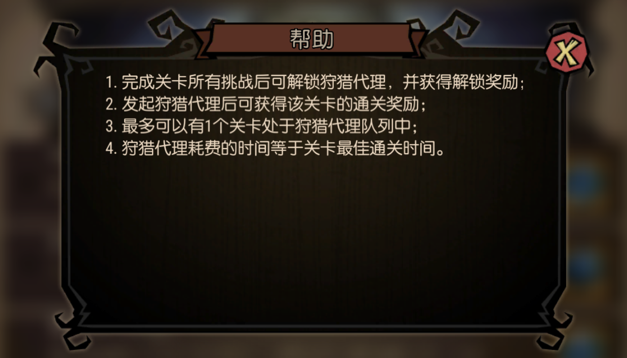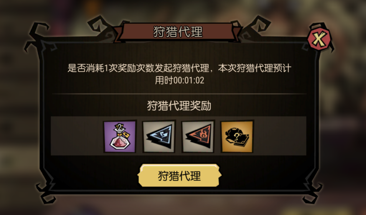 完成所有关卡挑战后,可解锁【狩猎代理】,可消耗一次奖励次数发起,并获得该关卡的通关奖励,最多可以有一个关卡处于狩猎代理队列中,BOSS都不用亲自动手打了,奖励直接领取到家~