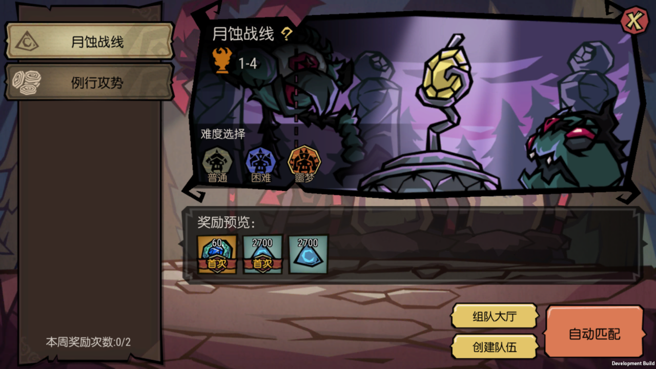 斗技场分为月蚀战线和例行攻势。可全天挑战。比较特殊的是斗技场模式不用收集物资,开局进去就是打怪!面对一波波袭来的怪物,就看谁的战斗实力更强了!(我先练练走位...)