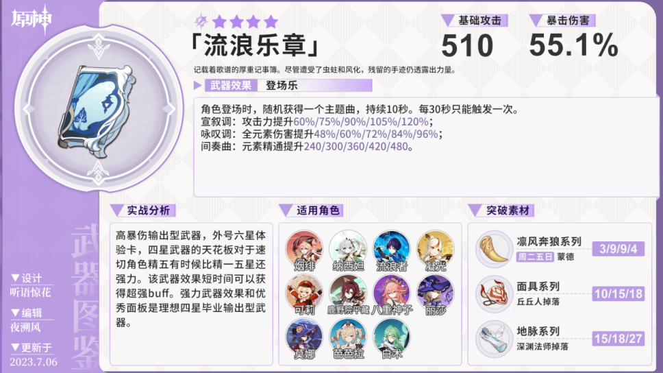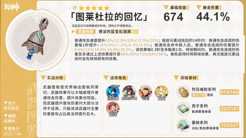 解析:玩法进一步优化提升。自回血数额提高,使得莱欧斯利很容易就能治疗溢出,从而触发四命的另一功能:攻速提高。而莱欧斯利获得治疗溢出一般均在场上,短暂启动后可视为常驻20%攻速。解析:大招倍率提升。进一步强化爆发伤害。解析:玩法进一步优化提升。强化重击的双暴提高,并且能够产生一道等同于重击倍率的、视为重击伤害的冰锥。当一个伤害数值等于重击伤害,能吃重击伤害的一切加成,那么它是什么?好了不开玩笑,这个机制联动1、4命,将强化重击加强到了无以复加的地步。再加上重击伤害单独附着的特性,使得重击能够吃满增幅反应的加成,强化重击的伤害占比大幅提高至强化普攻的近似水平,在部分队伍中甚至重击占比高于普攻。针对莱欧斯利的命座机制,我们可以看出莱欧斯利的命座加成非常大。对氪佬来说,一命的优先级要高于专武,此外就是三四命提升较大,满命提升极大,有能力满命的尽量满命。上文说到莱欧斯利的专武,我们就顺便来排列出莱欧斯利适合的武器一览吧。解析:专武是唯一一个完全契合零到六命莱欧斯利的武器。专武外形形似无人机,普攻重击均有增伤,叠层叠满后获得攻速提升。专武(精炼一阶)的加持下,一套普攻用时约2.5秒左右,恰好满足一命强化重击2.5秒的CD。因此建议一命后补专武。解析:流浪者的专武,外形形似铃铛,提供持续提高的普攻增伤。因输出机制相似,也可以为莱欧斯利所用。解析:在莱欧融化队中,被旅行者们戏称「赌狗乐章」的流浪乐章瞬间「赢家通吃」,其三个随机特效对莱欧斯利均有不俗加成。是想用其他下位武器打一场无趣的战斗,还是燃烧小宇宙,做十秒无敌的战神?解析:类似小专武的机制,非常契合莱欧斯利,但可惜主词条是元素充能效率,不过白值比较高,综合来看伤害水平尚佳,胜在免费白嫖精五。
