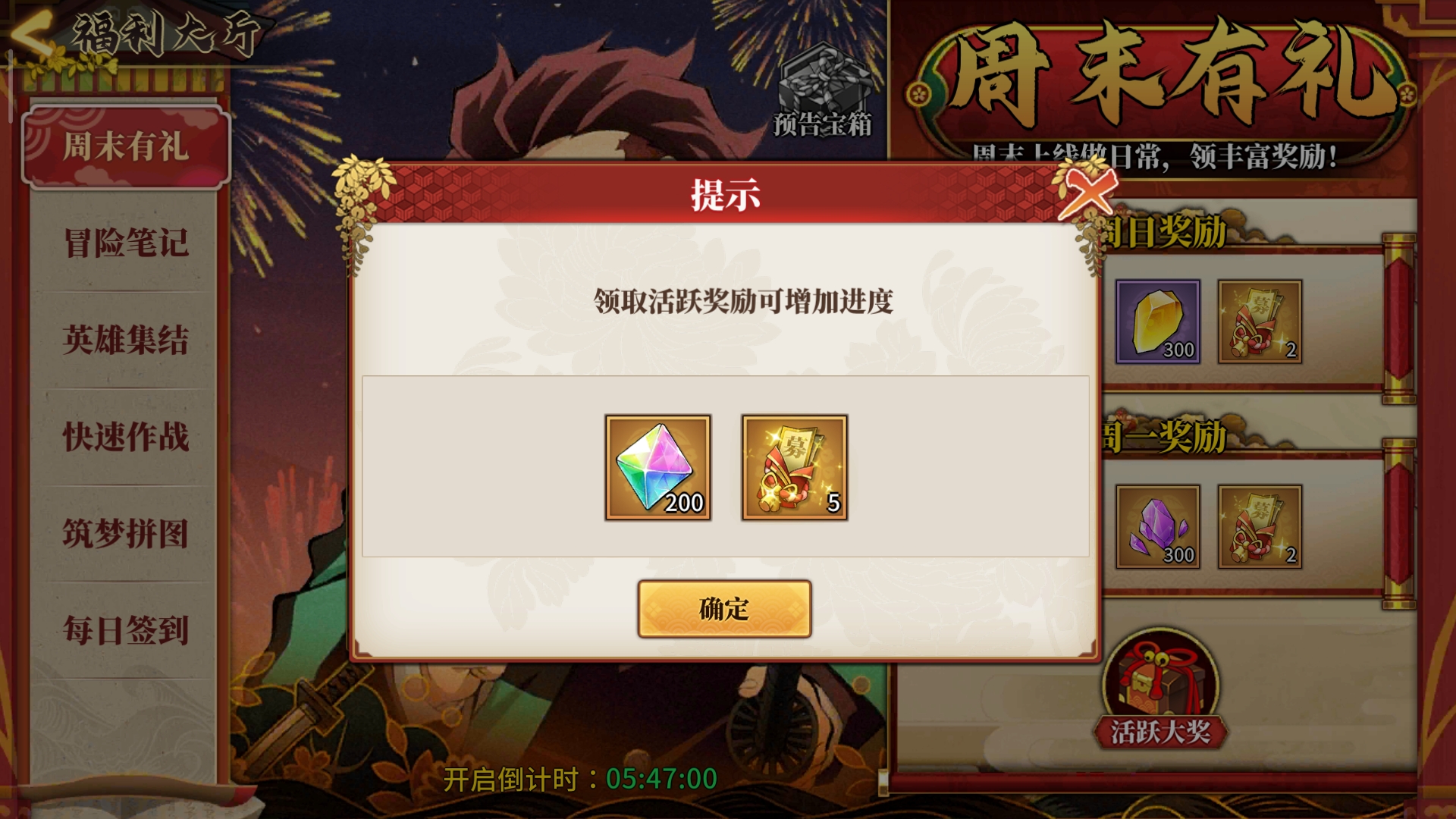 *任务*每日做做任务能领几百彩钻,周常任务花点时间就可以领羁绊礼盒和几百彩钻岂不美哉?