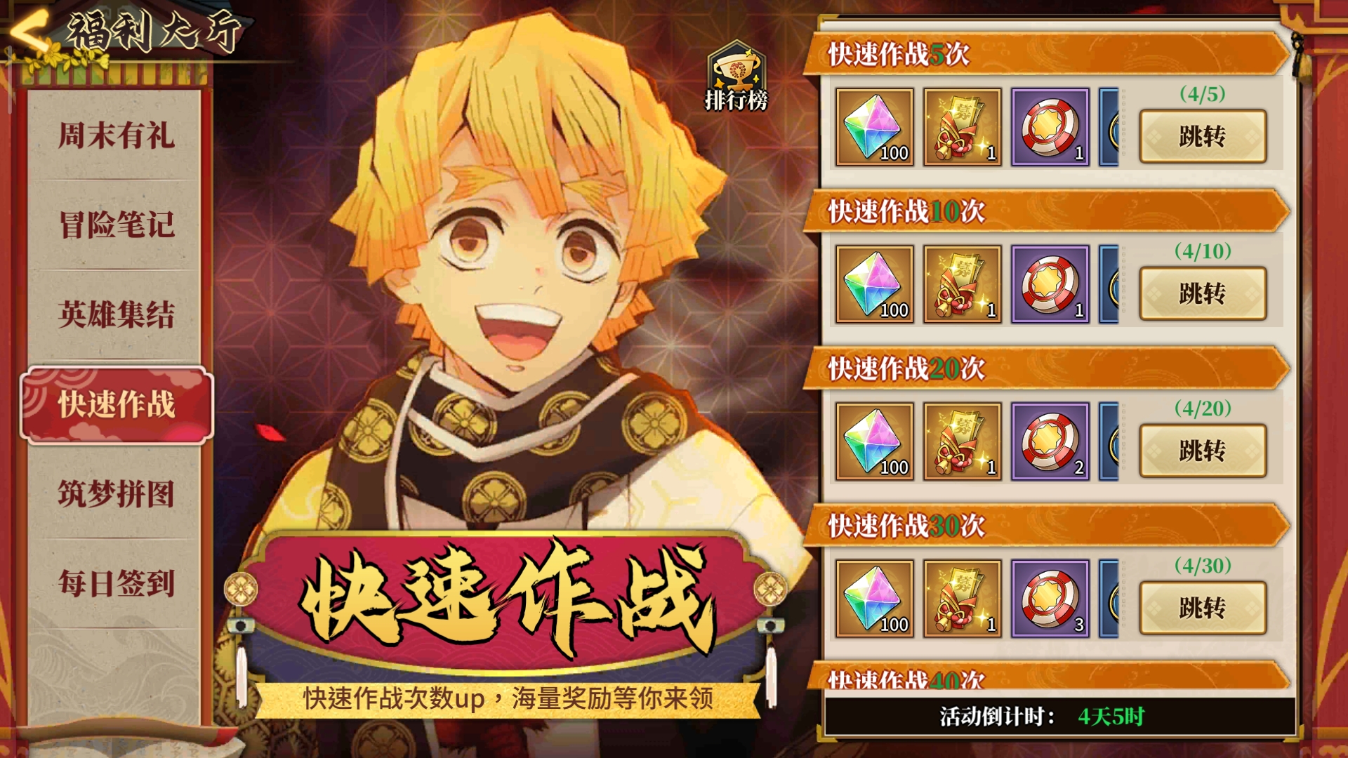 *挑战缘一木偶*推荐,每天五次机会打完领几百彩钻,不用担心角色死亡,攻击真的很刮痧