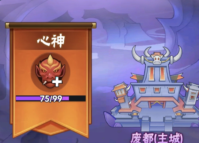 心神小于50的玩家不能出主城。心神可以用专属道具【饼干】补充。