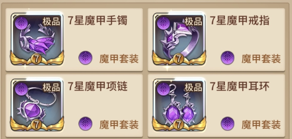 魔甲神装是当前版本下不需要卷速度的坦克英雄的最优解,常见于烂肉巴德尔、佳瑶、苟队魔盘古、大叔、倪克斯等一系列前排扛伤坦克。七星效果是在自身受到攻击时,对攻击者造成自身生命值上限5%的伤害,该伤害无视防御; 30%概率触发大成功,额外对敌方任意1位英雄造成等额伤害。七星魔甲效果相对七星勇气效果优秀不少,苟队慢速坦克建议携带魔甲套神装。