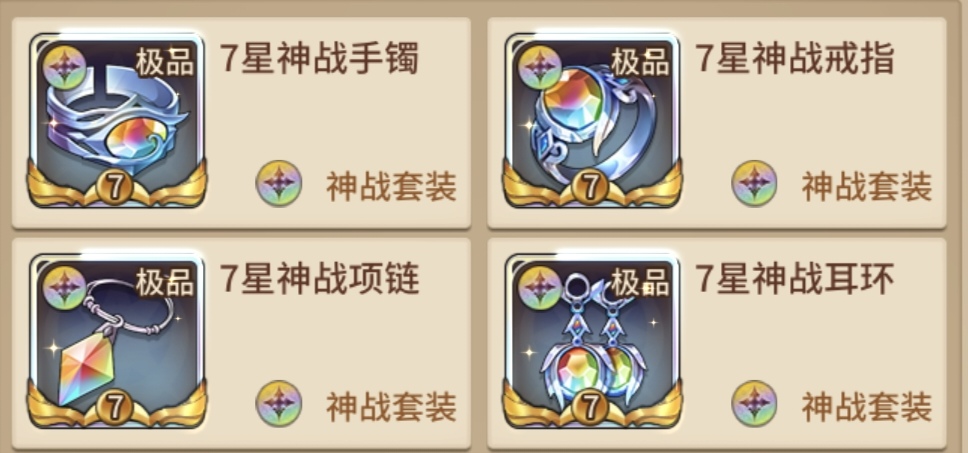 七星神战效果:进入战斗后,每回合提升4%伤害和2.5%攻击力,最多叠加7层(该效果不可驱散)。可以见得,这件神装非常吃回合数,回合数越高,效果越强。但是,当前版本下对局层次越高,结束越快,后期基本上一二回合就能解决战斗,所以这套神装在后期其实是不太吃香的,极限流一般更倾向于极速神装与狂怒神装。偶尔能看到人马携带神战神装,另一个见的多的应该是麒麟了,他由于自身机制问题,无法暴击,所以选择携带神战神装。此外,神战神装也是SP哈迪斯的一个重要选择(神战/极速/狂怒),SP哈迪斯不缺暴击率,选择神战神装用于提升伤害。