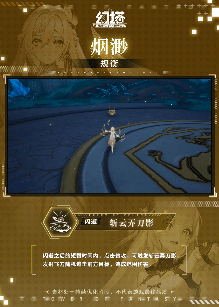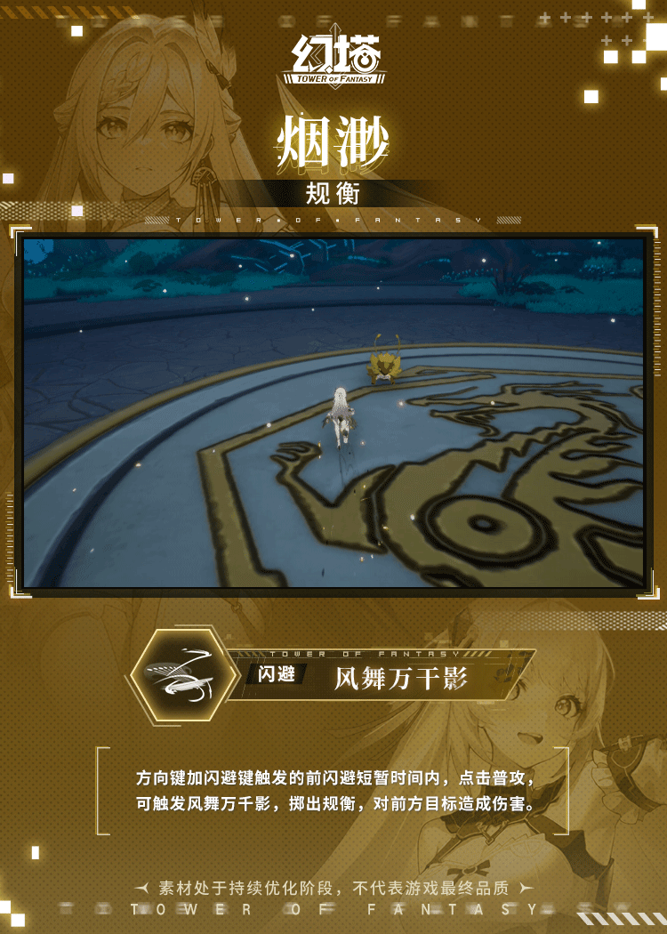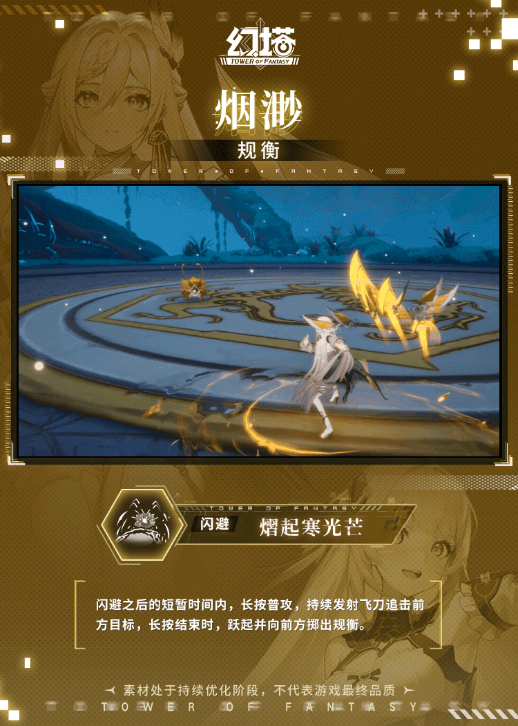 方向键加闪避键触发的前闪避短暂时间内,点击普攻,可触发风舞万千影,掷出规衡,对前方目标造成伤害。闪避之后的短暂时间内,点击普攻,可触发斩云弄刀影,发射飞刀随机追击前方目标,造成范围伤害。在地面或当拓荒者滞空时,长按后闪避,短暂蓄力后化身流光向前飞射,持续长按蓄力可以延长飞射距离。闪避之后的短暂时间内,长按普攻,持续发射飞刀追击前方目标,长按结束时,跃起并向前方掷出规衡。