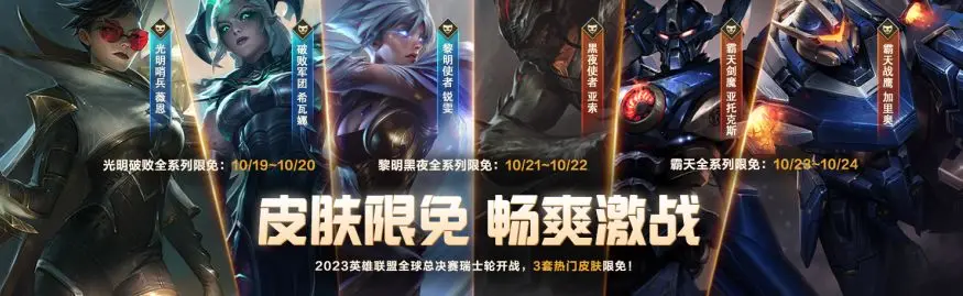 畅爽激战,助力对局!2023英雄联盟全球总决赛期间,峡谷将开展全英雄限免活动,召唤师可体验多位英雄进行对局。