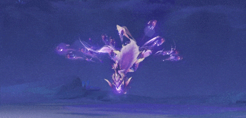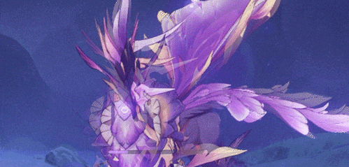 雷海马迅速的翻滚2圈,造成带衰减的60%、50%攻击力的雷元素伤害,击退玩家。无珠状态下,则只造成带衰减的50%、40%攻击力的物理伤害,击退玩家。图8:尾羽交扇-2圈