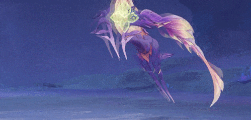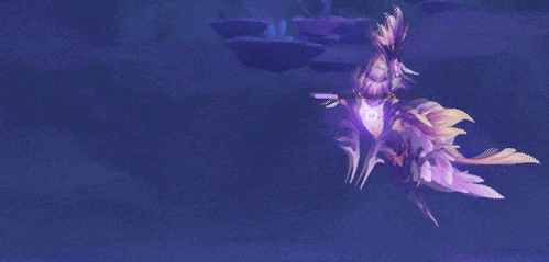 雷海马晃动羽翼,召出鱼群,数十条游鱼朝玩家方向飞来,鱼群的追踪性很强!游鱼造成带衰减的35%攻击力的雷元素伤害,打断玩家。●躲避: