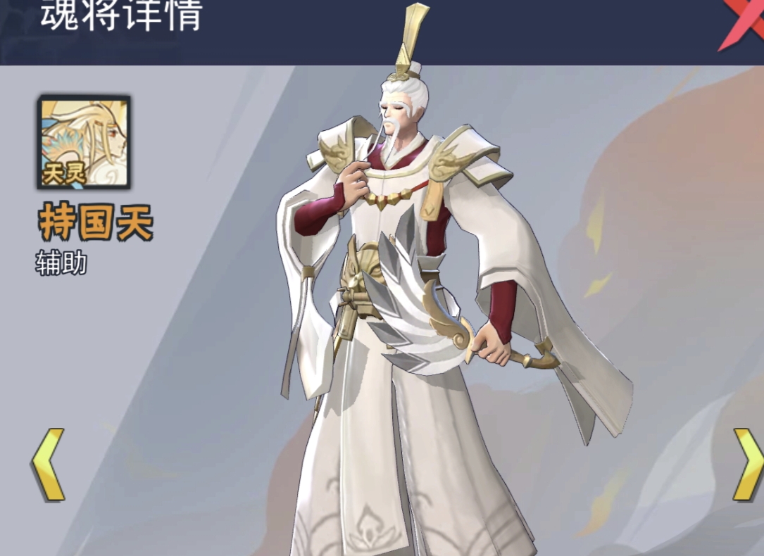 解析:天阵营的核心辅助,永动机阵容必备的魂将,拥有前排打击能力和全体回怒机制,和三眼神将是绝配,能够触发回怒效果以及前排伤害的合体技,专属法器能够加强队友大量的暴击率,是天阵容的首选的核心辅助。