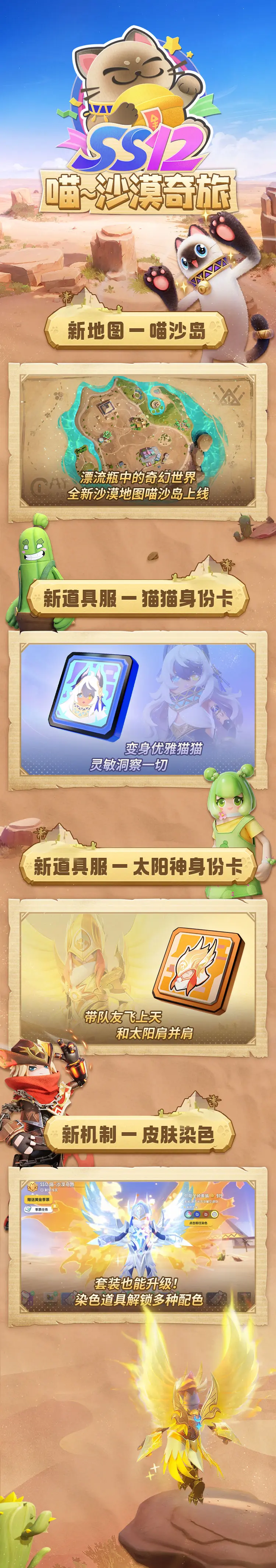 1、SS12赛季:喵~沙漠奇旅。故事将从一个漂流瓶中的沙漠世界开始,此地喵风淳朴..风景宜肠..派对获胜率未知..