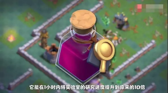 本次六月更新中还推出了一款新药水—研究药水,它的本质呢,跟建筑工人药水其实没多大区别,是在1小时内让实验室的研究速度提升至原来的10倍。这款药水海尔哥哥就不是很感兴趣了,因为海尔哥哥的兵种已经挺高级了,升级的资源实在太难凑了,咏王都不够升级的。