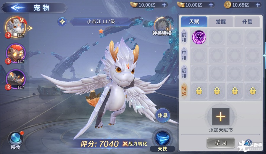 可使用天赋书,学习新天赋,学习时有概率替换已有天赋。前排孔位打满后,才可学习橙色/红色品质的前排天赋(中、后排同理)。特殊孔位需消耗道具,或者通过宠物觉醒进行觉醒,解锁后自动领悟天赋。