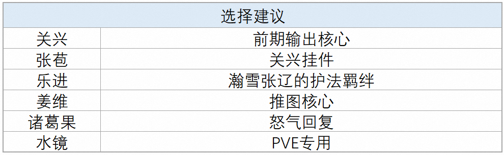 5. 后期转型魏蜀(有5火司马懿再考虑):诳诡司马懿(钟会护法,5火)+瀚雪张辽(乐进护法)+凛煜刘备(张飞护法)+张星彩(专武+5命)+关银屏(专武)+曹丕(专武+5命)/蔡文姬(专武+5命)