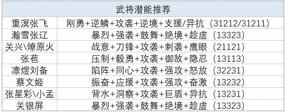 三、武将潜能推荐