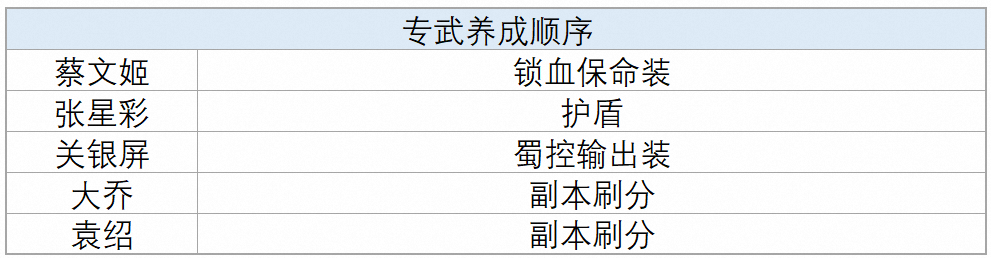 PS:之后再根据阵容和需求获取剩余所需专武,获取顺序并非一成不变,唯一刚需只有蔡文姬专武,其余的都可以根据自身养成情况灵活调整。