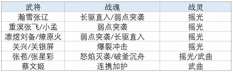 战灵只建议选择摇光和武曲,破釜/连携选择武曲,怒焰/战意/爆烈/长驱/弱点选择摇光。