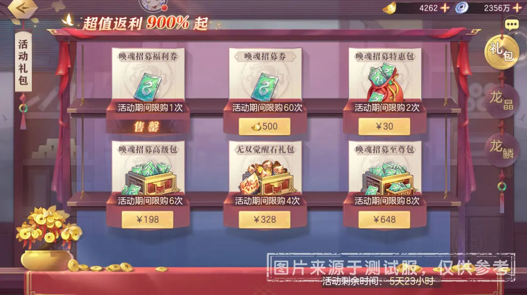 活动期间,限时上线唤魂特惠礼包,超值返利900%起!