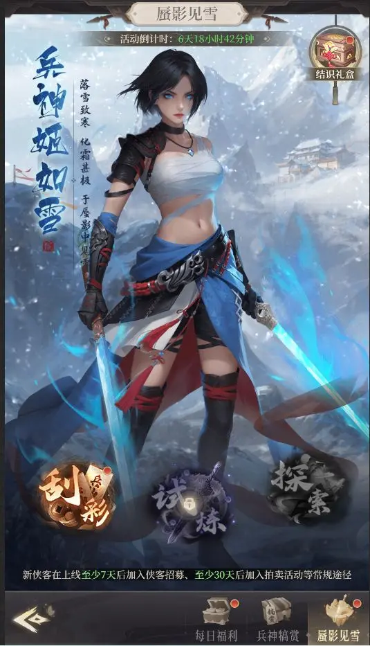 少侠们通过【刮刮卡】,有机会获得侠客-【兵神·姬如雪】,限定装备碎片,限定蛊器碎片等珍稀奖励。