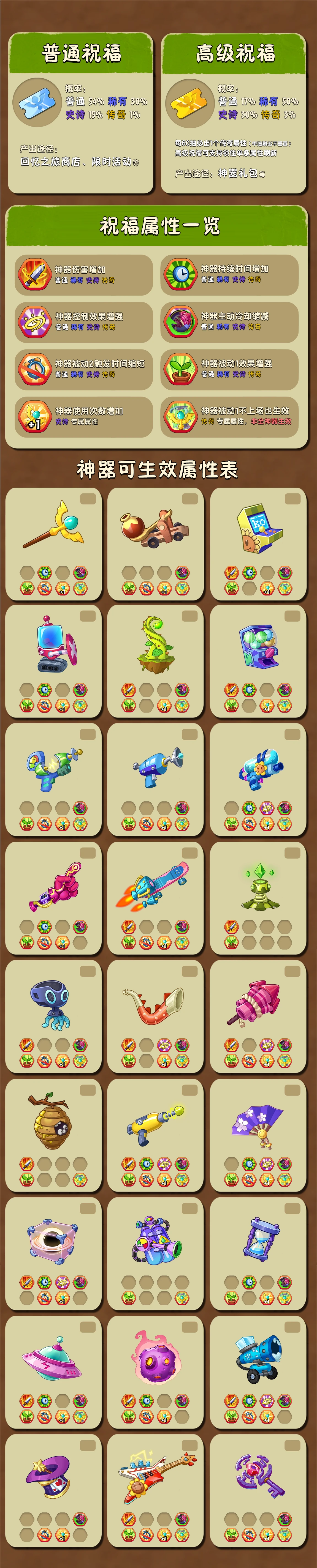 7、每种神器能够生效的属性不一样,不会在祝福中刷出不生效的属性的普通~史诗等级;