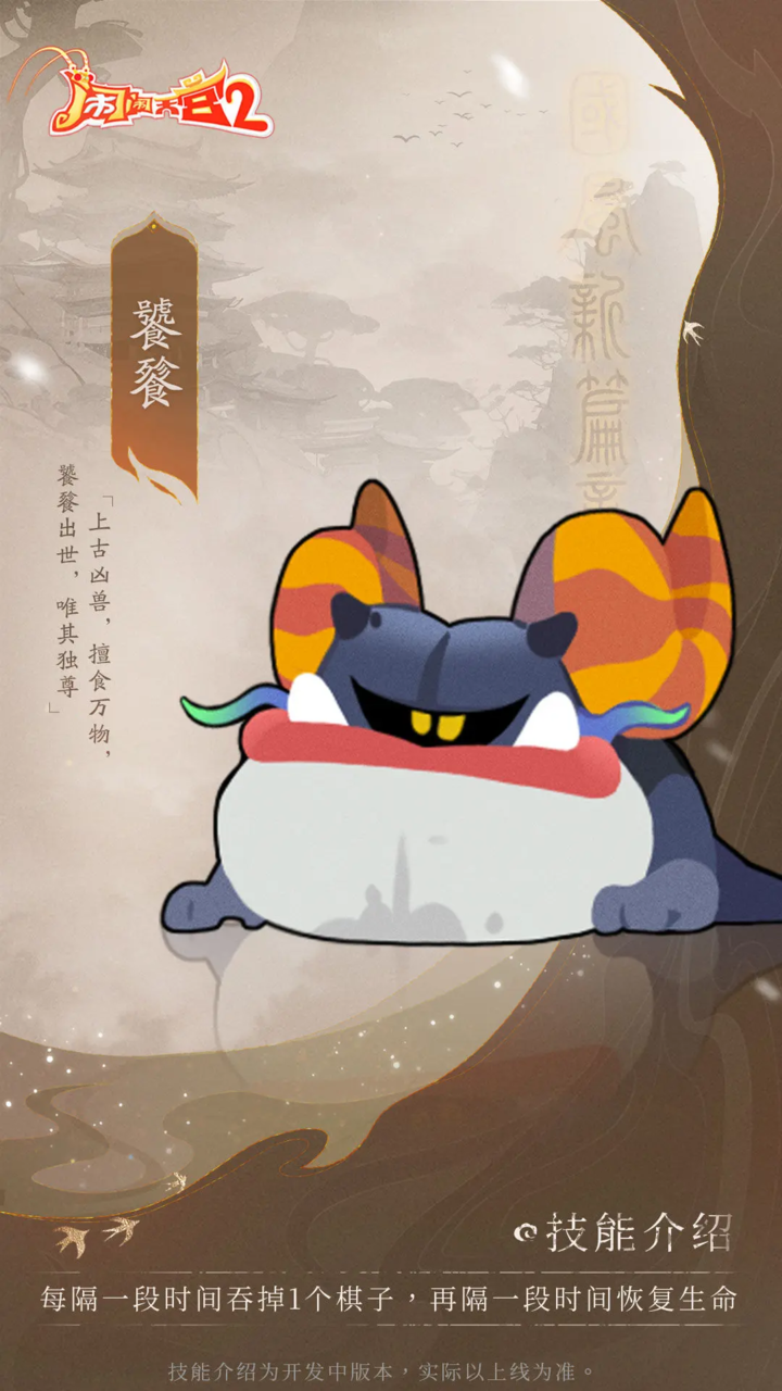 作为贪欲的象征,饕餮的技能主要是“每隔一段时间就能吞掉战场上的一个英雄单位,再隔一段时间恢复生命”,所以大家在面临这个首领的时候一定要多多小心,在战场上尽量前期多多布局英雄,谨防被吞掉之后自己没有战力~
