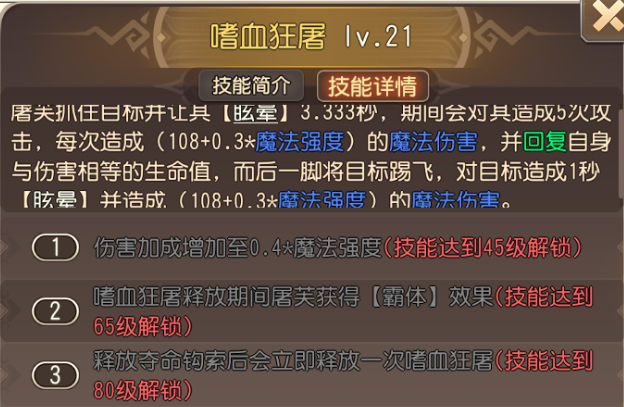 三技能——嗜血狂暴,释放时带霸体,把它当成一个绝对稳定的控制技能就好了。
